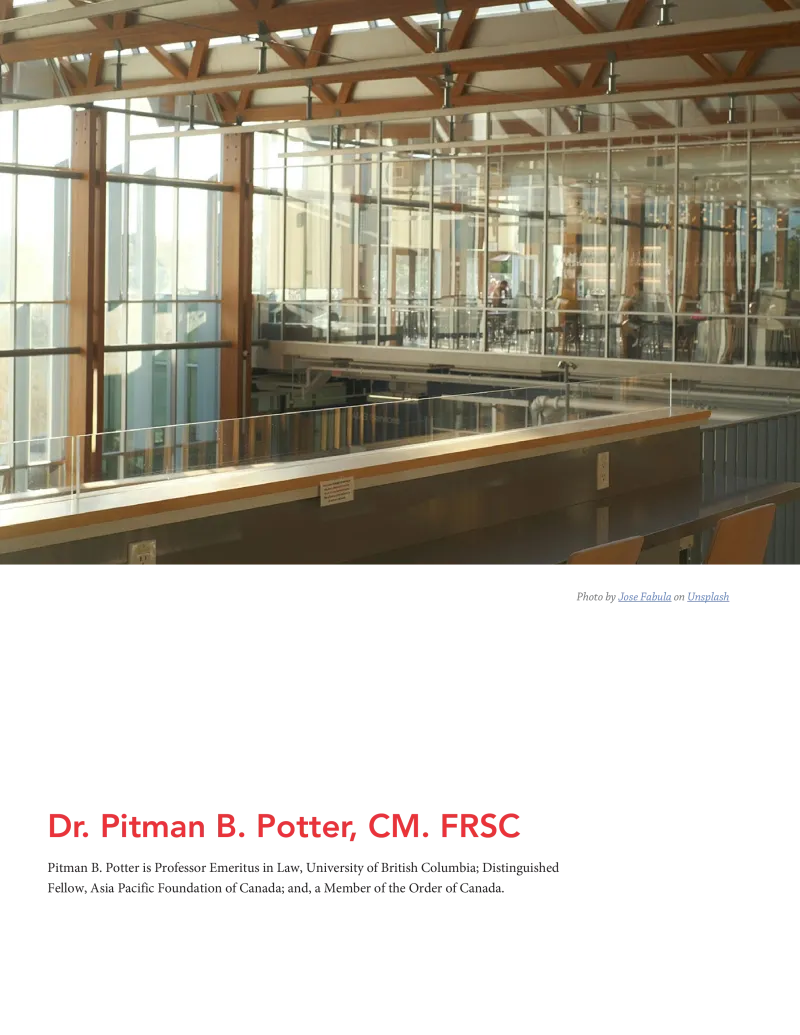 This paper, a special guest contribution from Dr. Pitman B. Potter, CM. FRSC, examines the role of Canadian values and national interests in Canada’s relations with China.