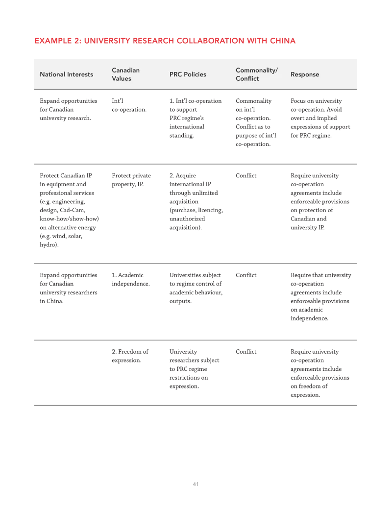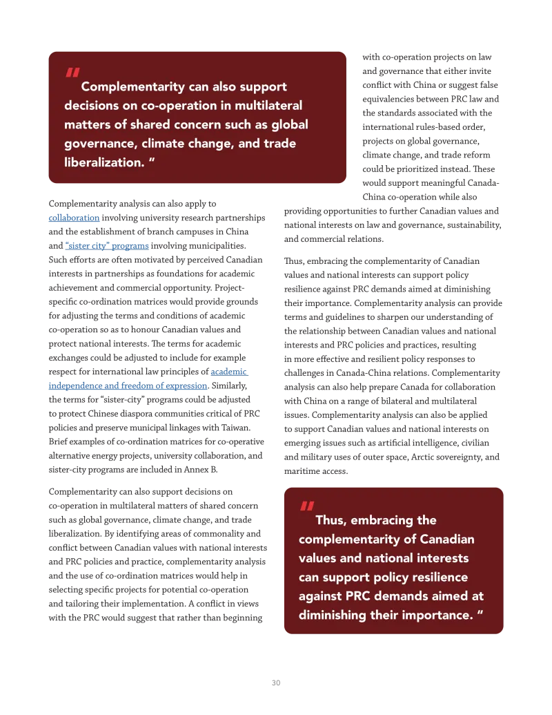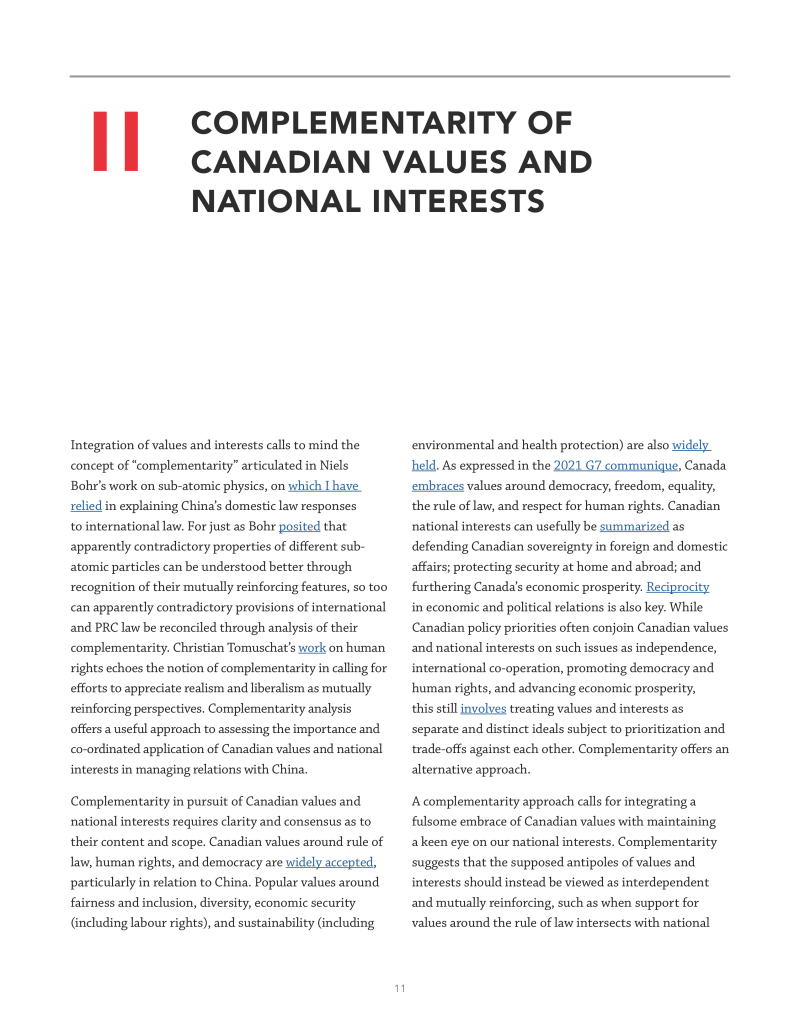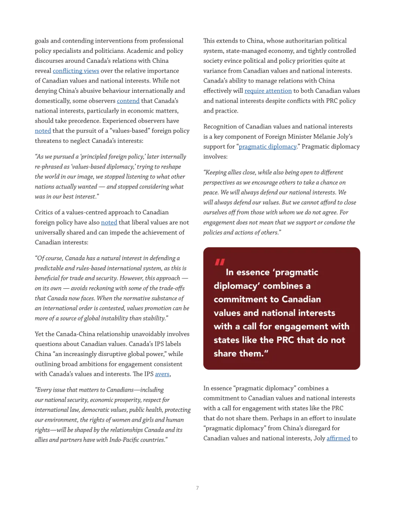 1. Acknowledge complementarity among Canadian values and national interests to build resilience in Canada’s China policies.