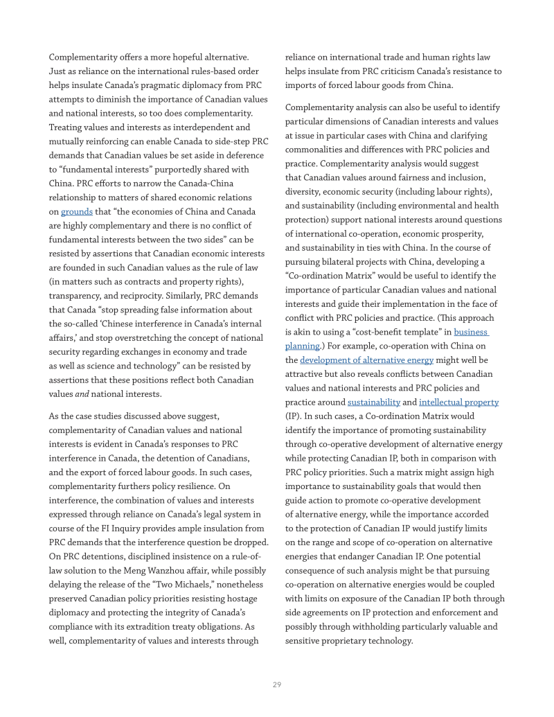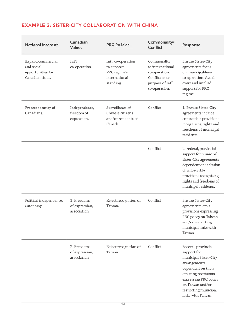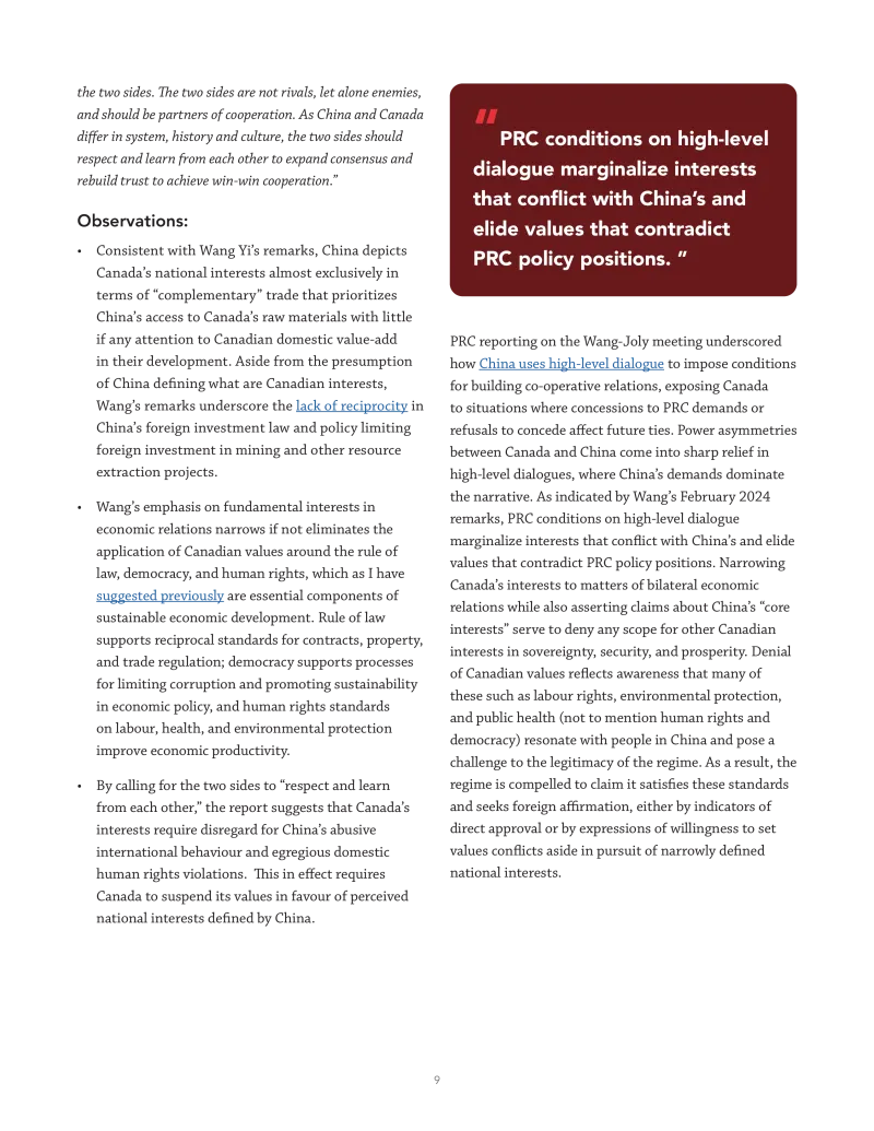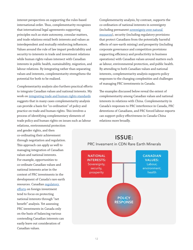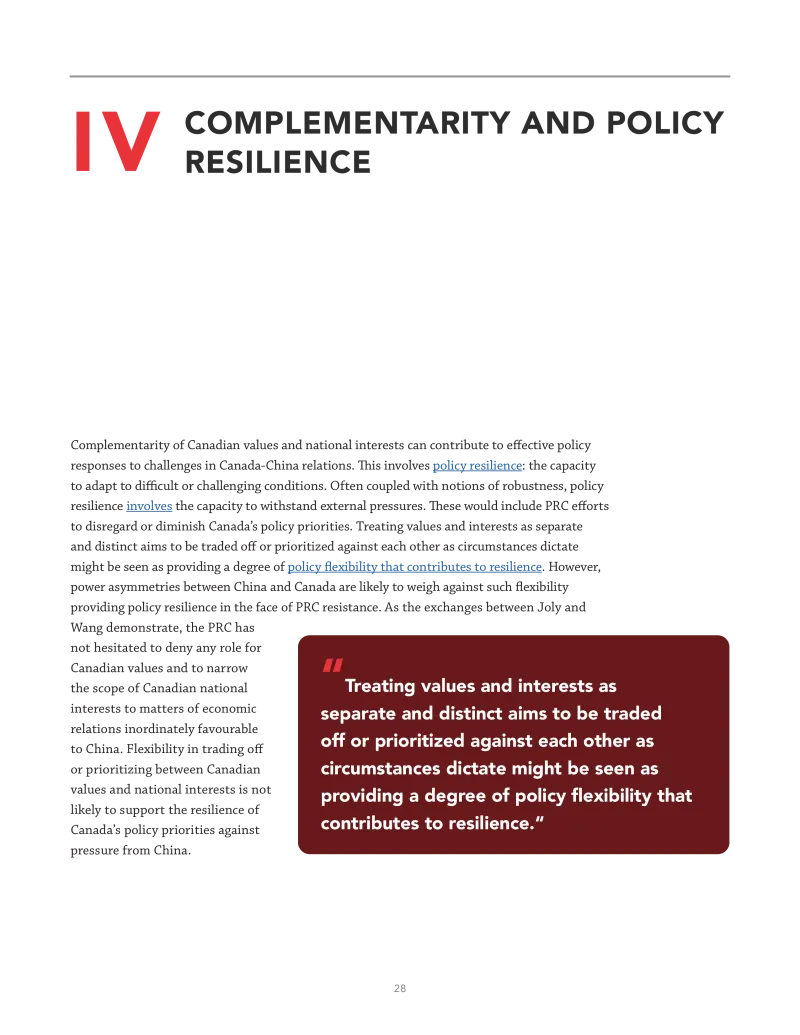 1. Acknowledge complementarity among Canadian values and national interests to build resilience in Canada’s China policies.