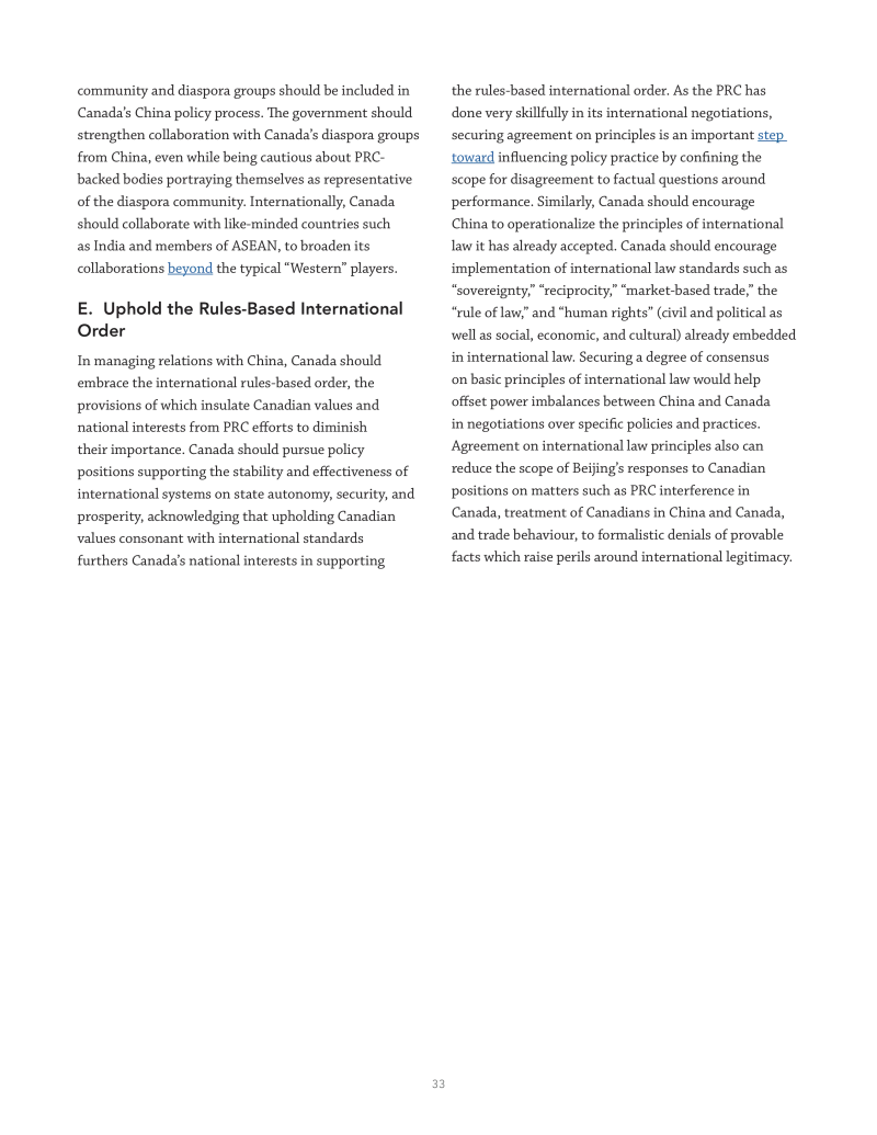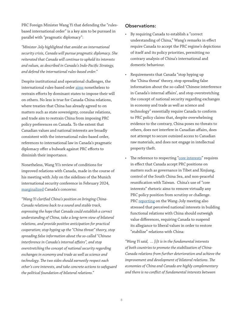 5. Uphold through advocacy and example the norms and institutions of the rules-based international order as standards to which Canada and China should adhere.