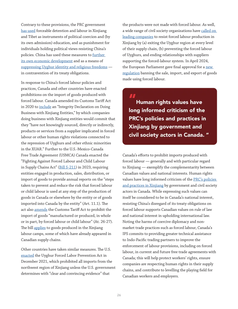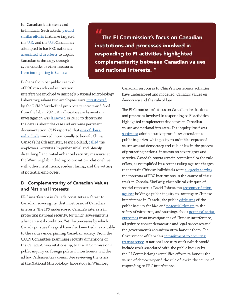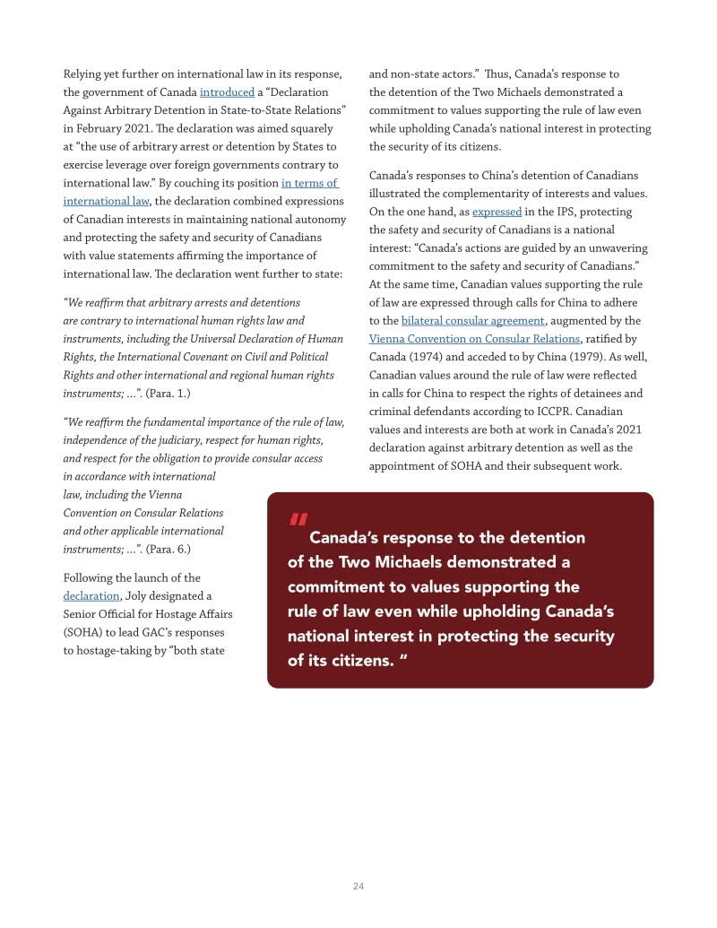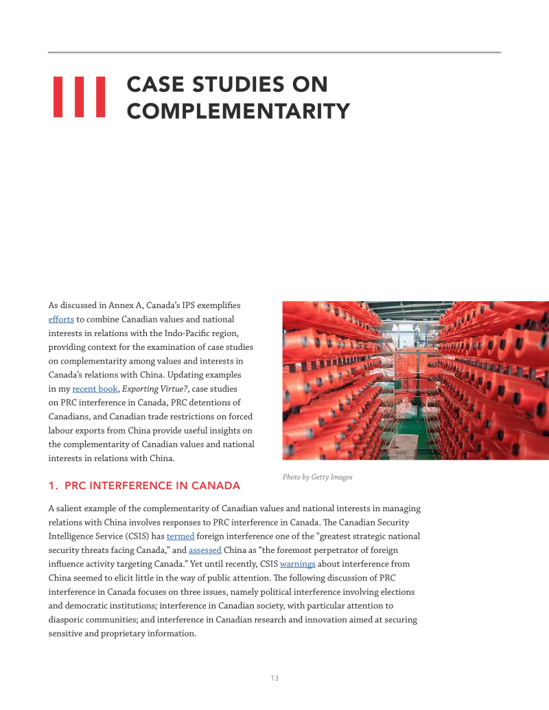 Acknowledging the attention given to Canadian values and national interests in Canada’s Indo‑Pacific Strategy (IPS), the paper offers three case studies, on interference by the PRC in Canada, the detention of Canadians in China, and Canadian restrictions on goods produced with forced labour in China, to illustrate complementarity among Canadian values and national interests. The paper suggests that complementarity analysis can help build policy resilience for pragmatic diplomacy with China in response to current and future challenges.