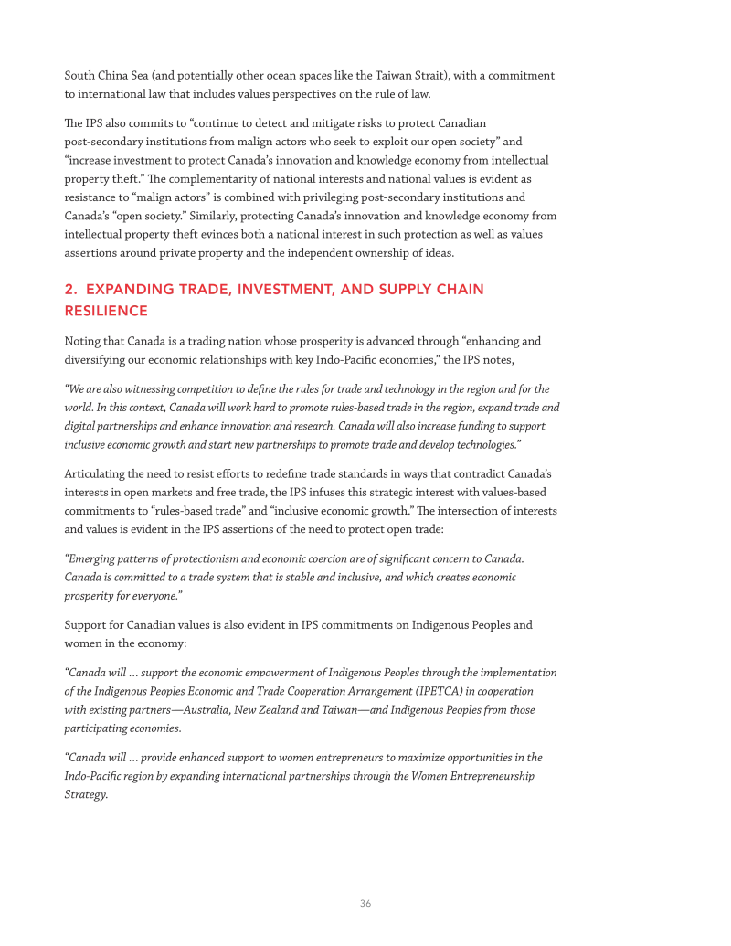 2. Pursue pragmatic engagement with China that protects Canadian interests while also honouring Canadian values.