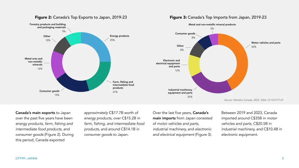 Tracking bilateral trade relations with Japan at the national and subnational level in the five years post-CPTPP ratification (from 2019 to 2023) with 2018 data for context, our CPTPP Mini-Report: Japan below identifies future trade opportunities for Canadian firms interested in expanding their presence in Japan.