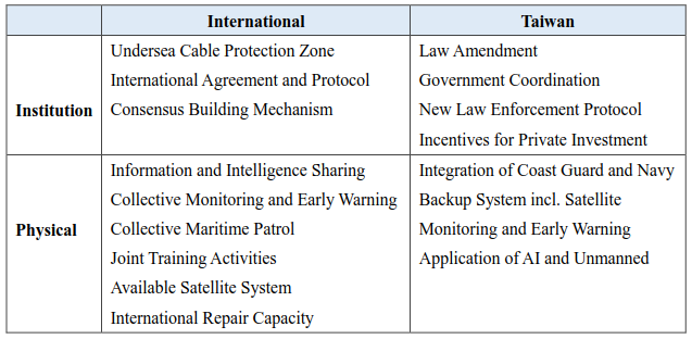 Table 1. Taiwanese and International Efforts to Improve Undersea Cable Resilience