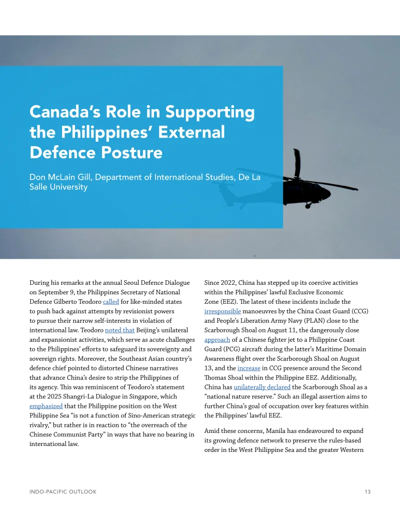 Accordingly, the Philippines has embarked on a proactive calibration of its defence ties to reflect its long-term security objectives. Along with deepening strategic collaborations with fellow Indo-Pacific powers, the Philippines has also operationalized functional partnerships with Western states that share the same interests in a free, open, and rules-based regional maritime order. Among them, Canada has emerged as a crucial security partner.