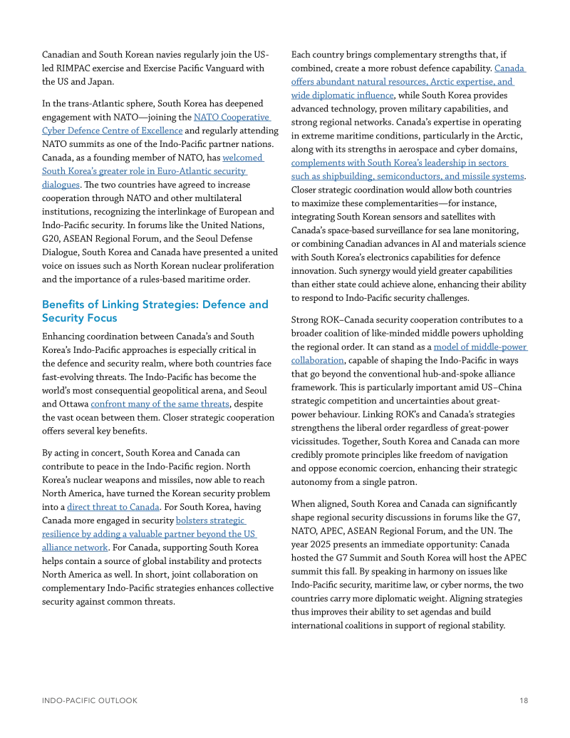 Third, there has been an amplification of our security presence. Under Operation HORIZON, Canada now deploys three Royal Canadian Navy warships annually to the Indo-Pacific, participates in multilateral exercises, and synchronizes with partners on maritime security — a tangible signal of the seriousness of our commitment.