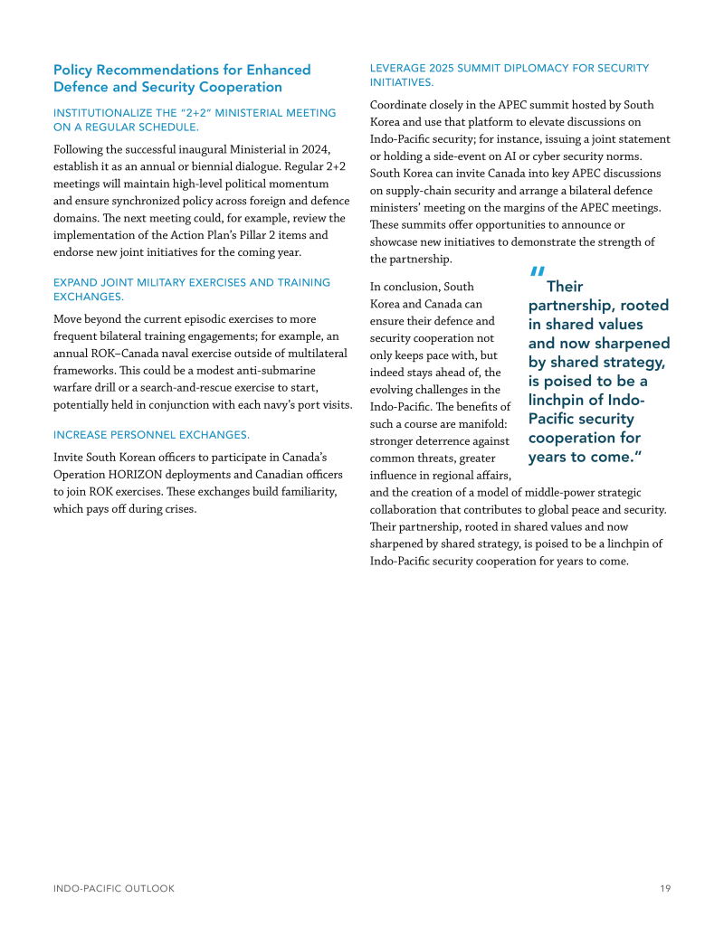 Together, these elements — new outposts, senior visits and missions, sustained naval presence, and funding for tools that help solve partners’ problems — have raised Canada’s profile and increased its regional participation. They also build on the perception of Canada as a constructive, values-aware, and partnership-oriented actor.