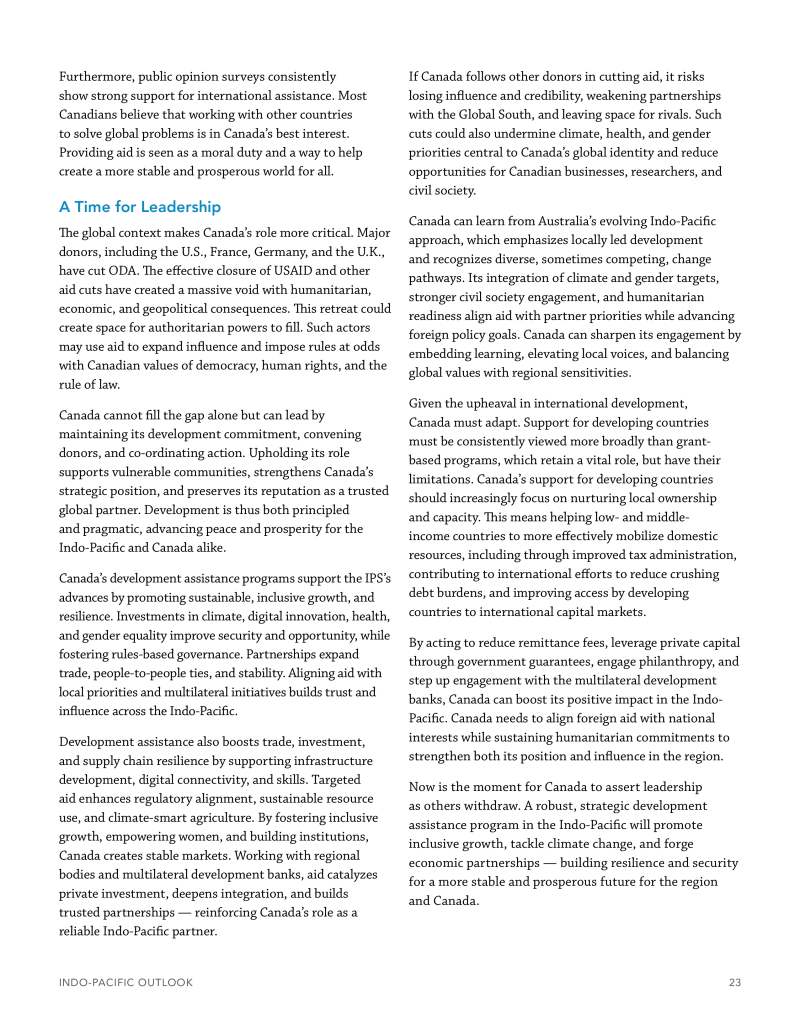 Now is the moment for Canada to assert leadership as others withdraw. A robust, strategic development assistance program in the Indo-Pacific will promote inclusive growth, tackle climate change, and forge economic partnerships — building resilience and security for a more stable and prosperous future for the region and Canada.