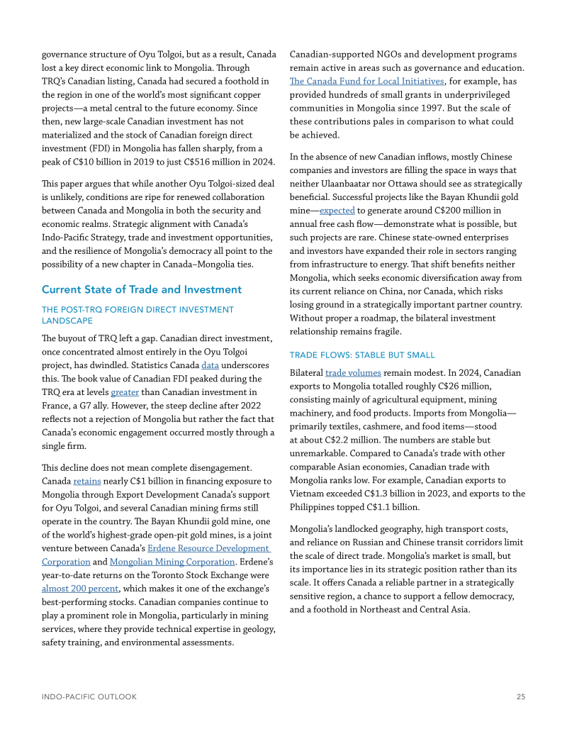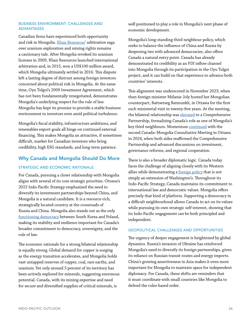 Canada boasts a 25,000-kilometre Pacific coastline and has welcomed large numbers of immigrants from the Indo-Pacific. The region’s strategic importance is amplified by challenges such as deepening great power competition, rising inter-state tensions, climate change, and biodiversity loss. Canada’s engagement, formalized in the 2022 Indo-Pacific Strategy (IPS), is a whole-of-society response aimed at seizing opportunities while defending Canadian values.