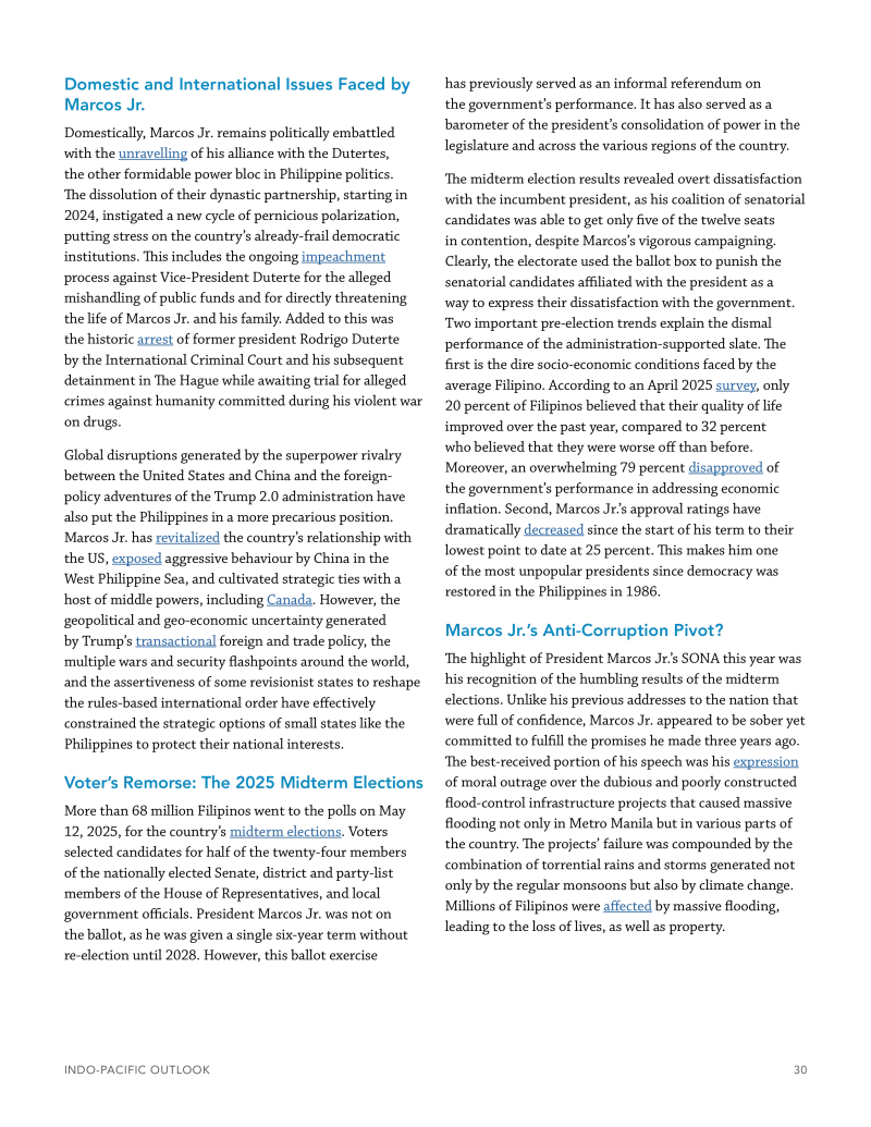Choose anchors and design ‘minilateral’ platforms. For each anchor partner (Australia, Japan, New Zealand, Philippines, and South Korea), draft three-year compacts with six to eight deliverables each, focused, for example, on security, trade, and talent. Make these deliverables public and modest in number and track progress on a quarterly basis.
