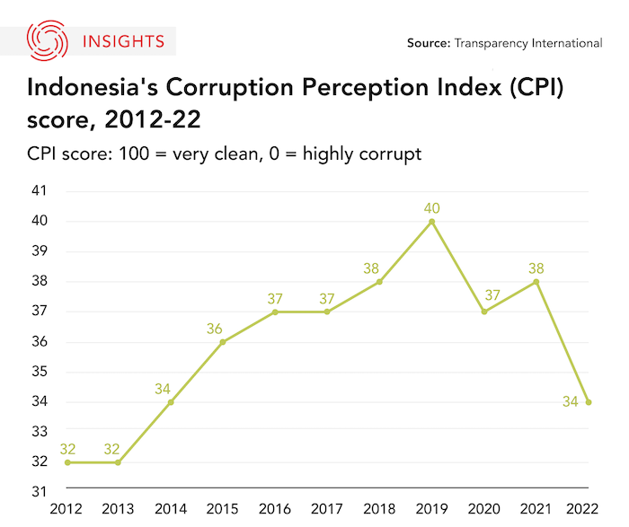According to Transparency International's latest annual report, released this February, Indonesia dropped 14 spots on the Corruption Perception Index (CPI) for 2022, placing 110th out of 180 countries and territories. Between 2019 and 2022, Indonesia’s CPI score dropped by six points. The trend reflects the worsening corruption situation in Indonesia, caused by the weakening of the country’s Corruption Eradication Commission and the lack of oversight on mass infrastructure development projects in the country. Indonesia has grappled with entrenched corruption, with government officials frequently receiving bribes to expedite projects and grant permits. The recent controversy may deter foreign investors from investing in the country, which does not bode well for Indonesia and Jokowi, who has been trying to attract foreign investment for a C$46.5 billion (521 trillion Indonesian rupiahs) new capital, Nusantara, in Kalimantan.
