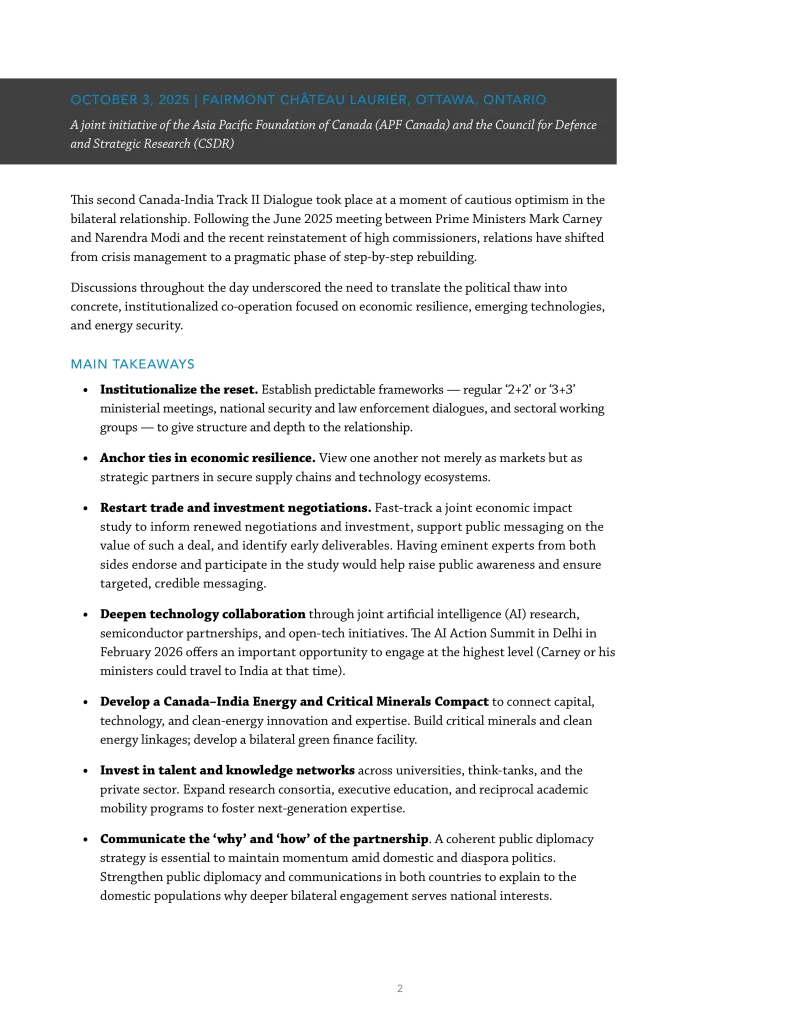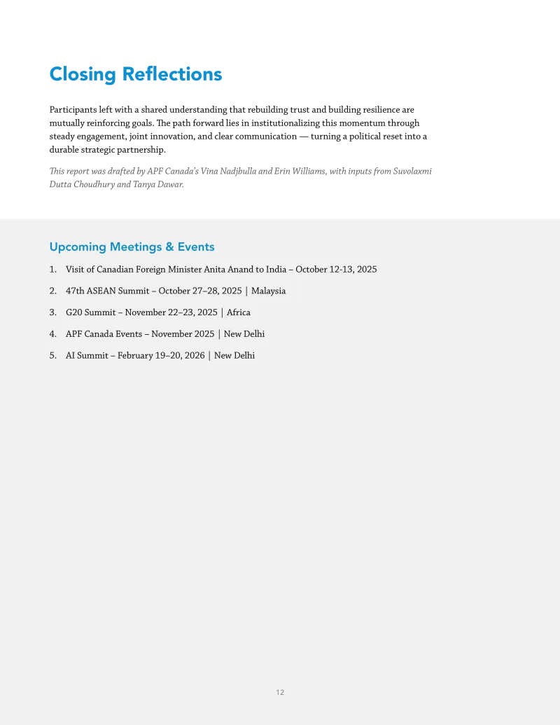 Discussions throughout the Dialogue, part of APF Canada's Indo-Pacific Initiative Programs, supported by the Government of Canada through its Indo-Pacific Strategy, underscored the need to translate the political thaw into concrete, institutionalized co-operation focused on economic resilience, emerging technologies, and energy security.