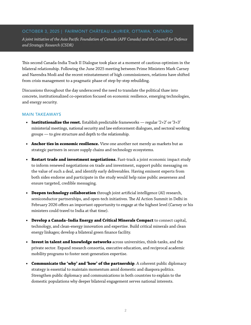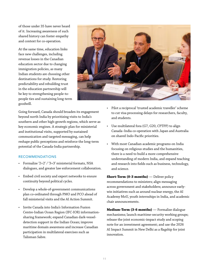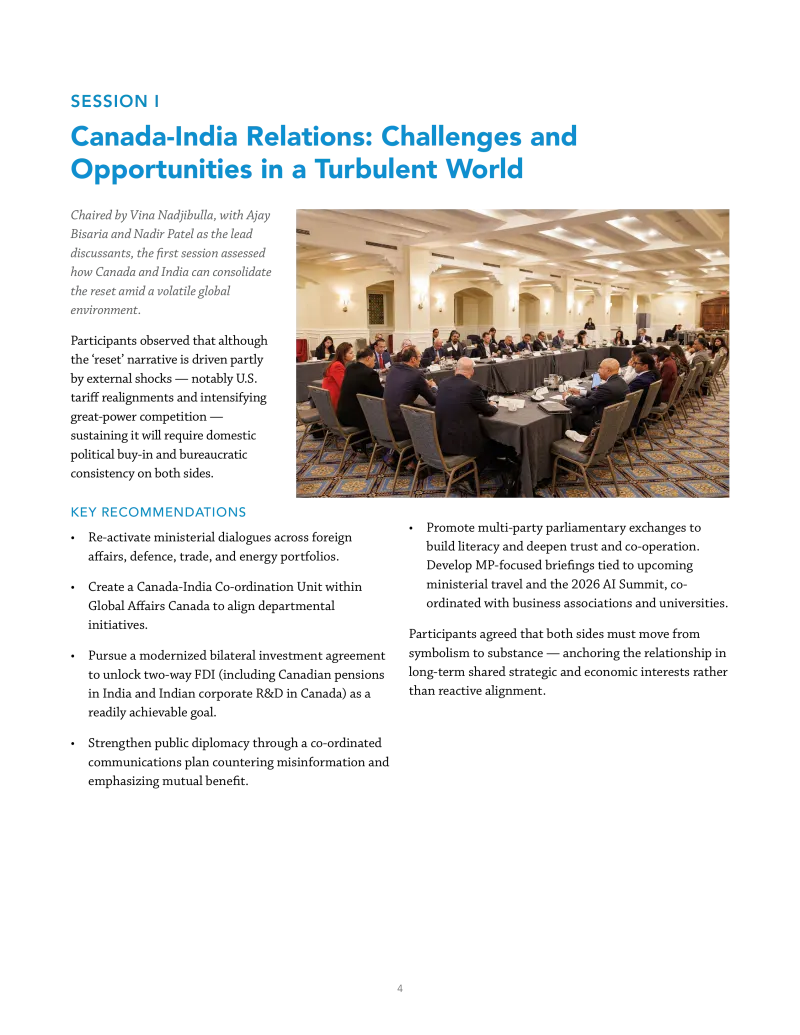 - Deepen technology collaboration through joint artificial intelligence (AI) research, semiconductor partnerships, and open-tech initiatives. The AI Action Summit in Delhi in February 2026 offers an important opportunity to engage at the highest level (Carney or his ministers could travel to India at that time).