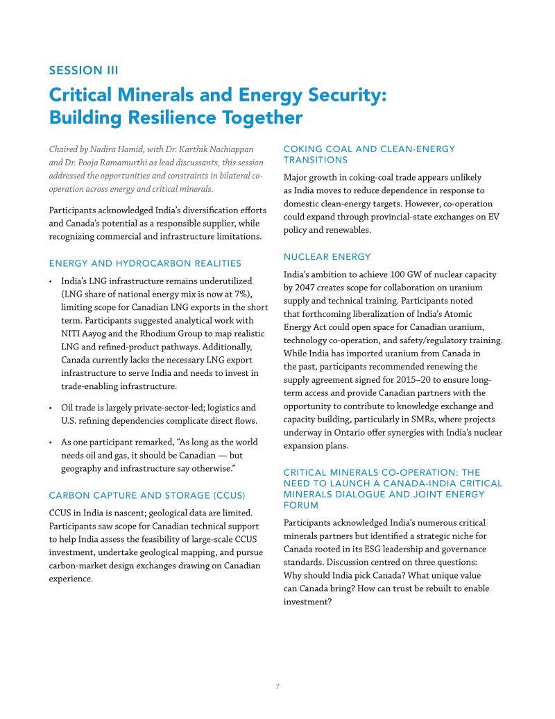 - Develop a Canada–India Energy and Critical Minerals Compact to connect capital, technology, and clean-energy innovation and expertise. Build critical minerals and clean energy linkages; develop a bilateral green finance facility.