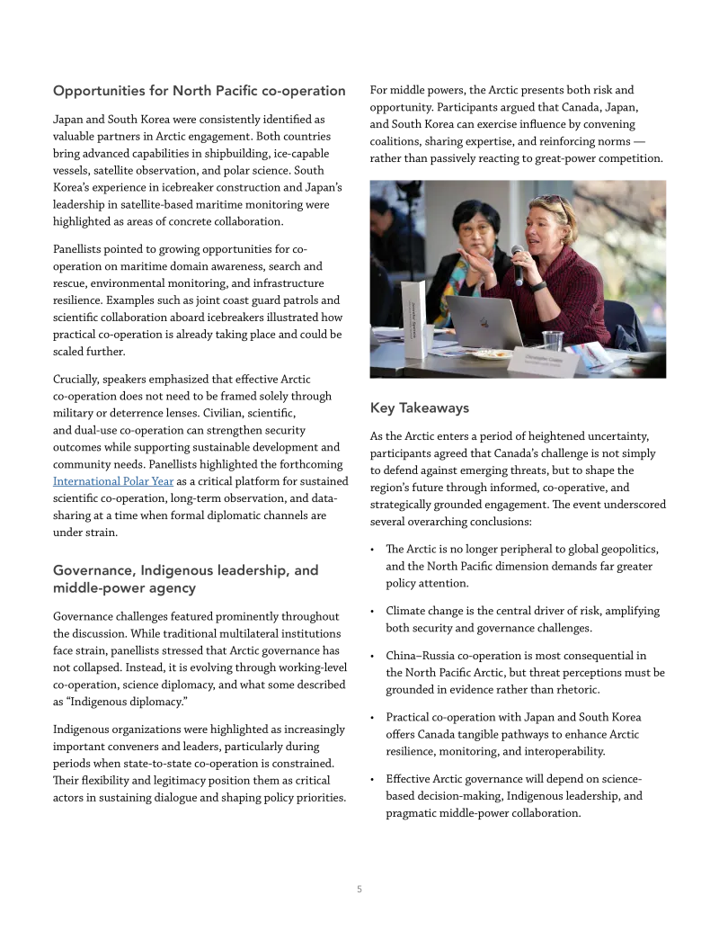- Effective Arctic governance will depend on science-based decision-making, Indigenous leadership, and pragmatic middle-power collaboration.